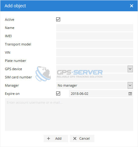 - Add object window will appear.