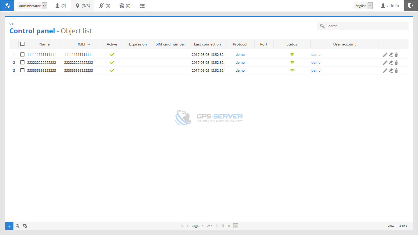 Control panel allows to view, add, edit and delete objects located in object list page.