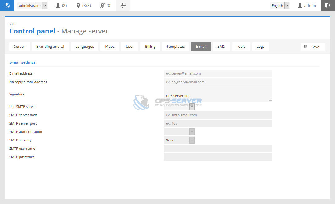 This section allows to configure e-mail settings. For more details about SMTP configuration contact your e-mail server provider.
