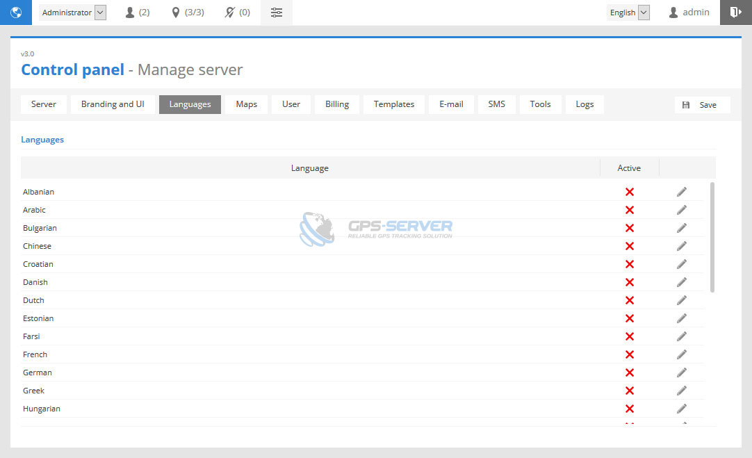 - Max. number of markers - limit markers for all users, also limit can be set for each user separately in Control panel edit user page.