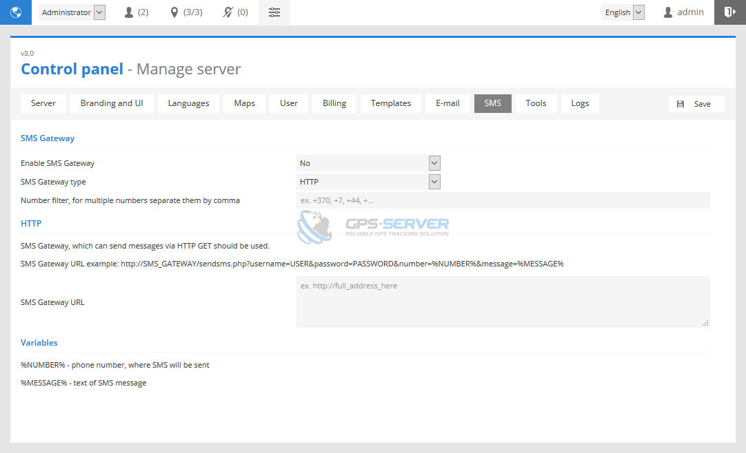 This sections allows to configure SMS gateway.