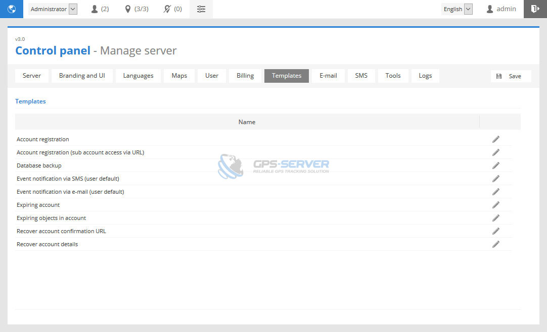 This section allows to edit system notification templates.