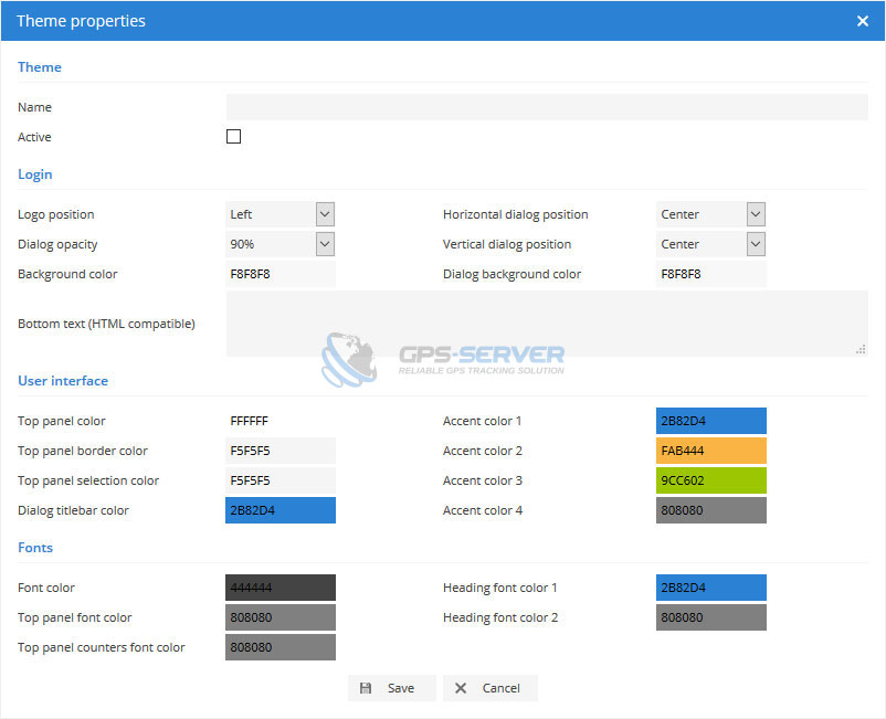 - Theme properties window will appear.
