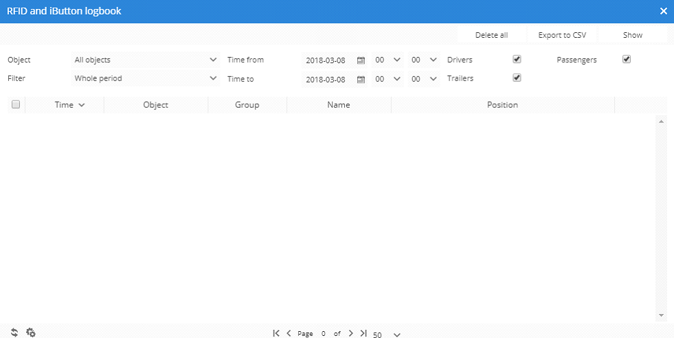 Logbook allows to see information received from RFID and iButton. All recorded changes of drivers, trailers and passengers will be displayed.