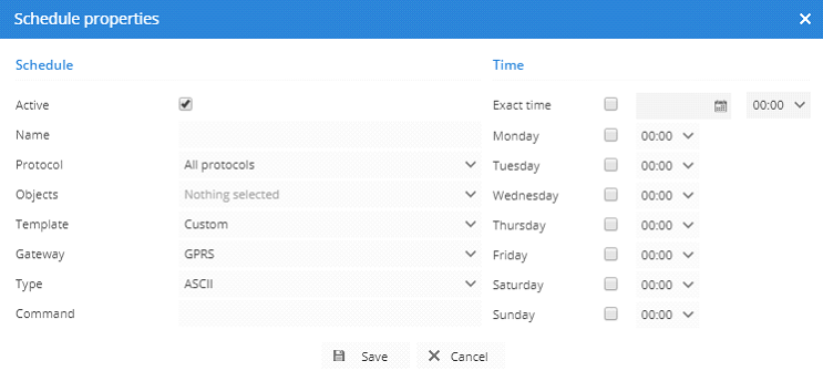 Object control schedule allows to put command sending on schedule so commands will be executed on chosen week day or exact time.
