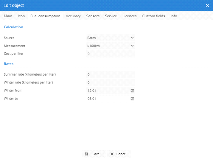 Note: system fuel consumption statistics may vary from real fuel consumption of your vehicle. In order to receive fuel consumption statistics in your reports you need to set fuel consumption parameters.