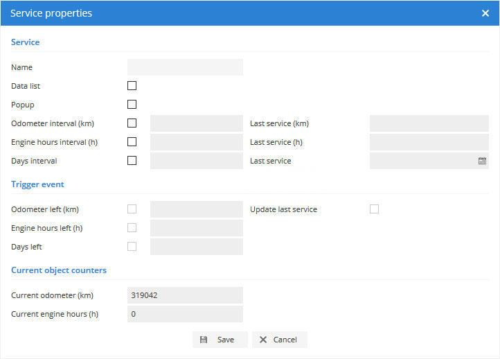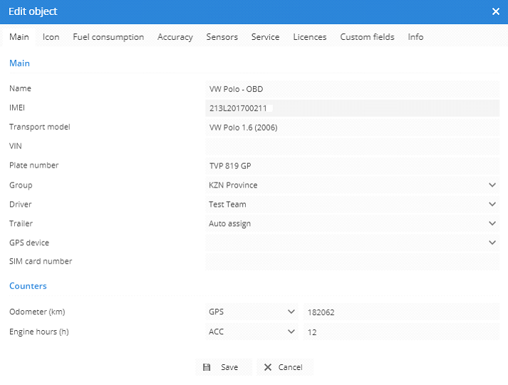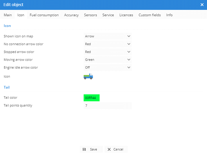 - GPS device - choose GPS device model. It is not mandatory and doesn't affect object work behavior. Feature is used only as a reference.