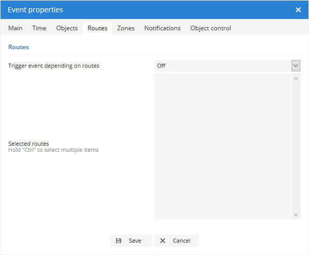 - Out of selected routes - event will be triggered if object goes out of selected route.