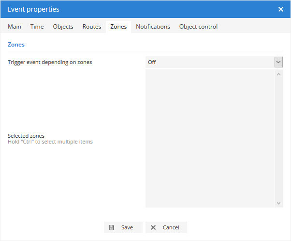 - Out of selected zones - event will be associated to all zones except selected ones.