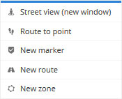 Route to point - calculates fastest route from current object location to selected point. To use this feature, object must be selected in left panel. Calculated route later can be used to trigger event.