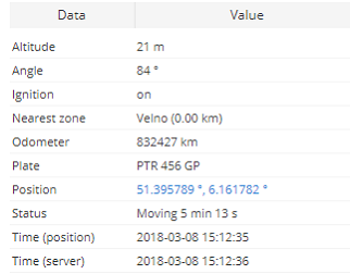 - Ignition – ignition status (on or off).
